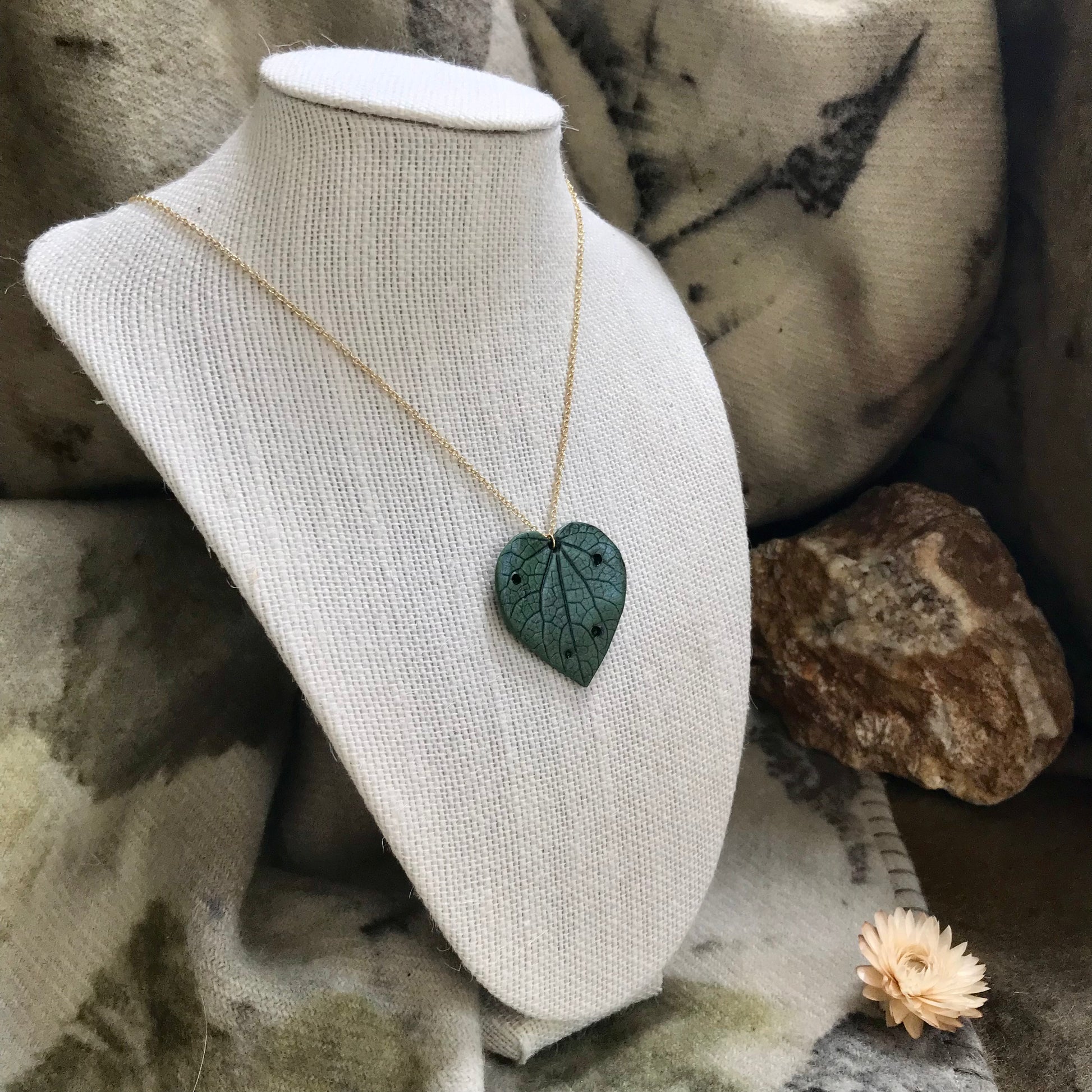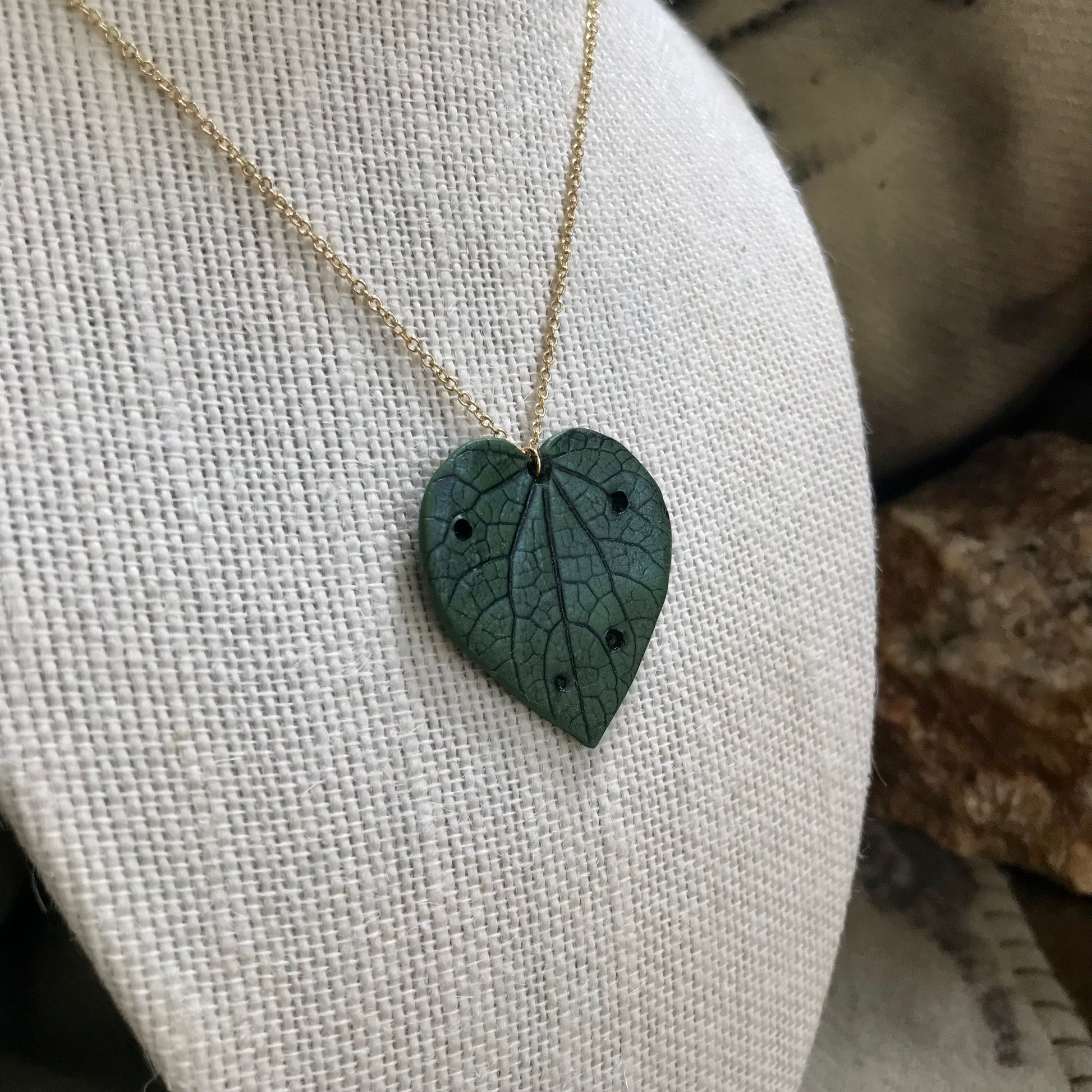 Each one of these beautiful Kawakawa leaf necklaces are unique, individually hand sculpted from modelling clay. Just as in nature, no two leaves are exactly the same. This pendant is light to wear and is set on a delicate silver plaited chain.